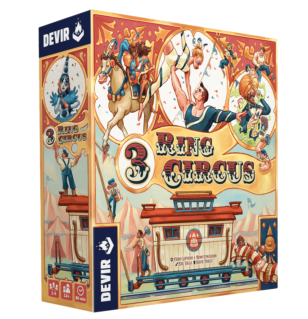 Diseñado por Fabio Lopiano (Merv, Autobahn, Calimala) y Remo Conzadori e ilustrado por Edu Valls (responsable del arte de juegos como Bitoku o Tiny Turbo Cars), “3 Ring Circus” es un título que se puede disfrutar en solitario o en un grupo de hasta 4 jugadores en el que los participantes se pondrán en la piel de un director de circo que recorre los Estados Unidos a finales del siglo XIX.