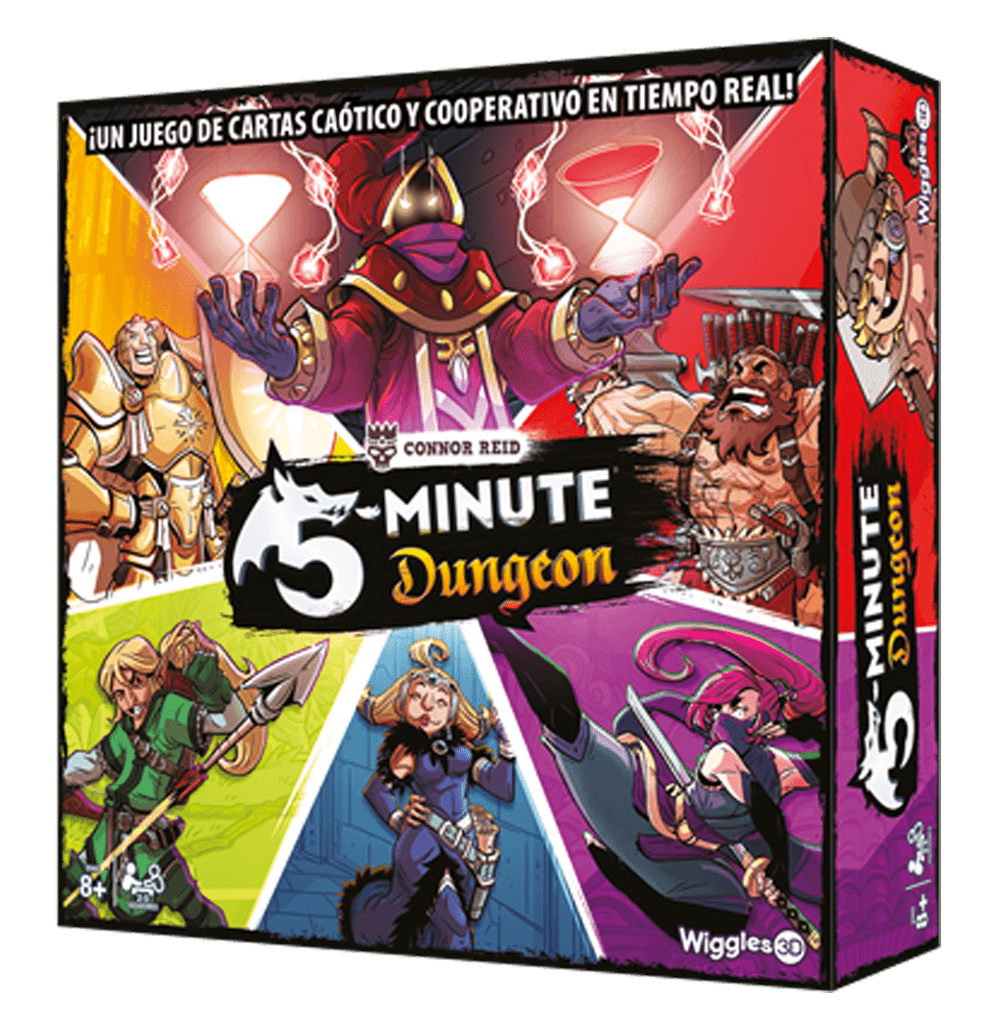 “5-Minute Dungeon” es un juego de mesa cooperativo, sencillo y rápido de jugar. Se trata de un juego que no tiene turnos sino que todo el mundo juega contra el reloj para conseguir los símbolos que coincidan con la carta correspondiente, en donde los jugadores sólo tienen cinco minutos para conseguir superar cada mazmorra a la que se enfrentan.