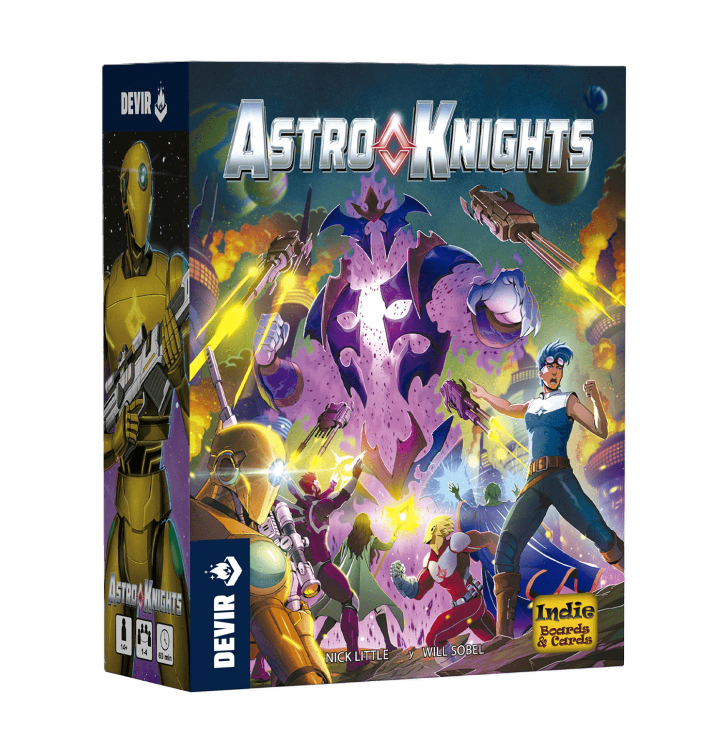 “Astro Knights” es un juego de mesa cooperativo, de construcción de mazos, en el que tu mazo nunca se baraja. Tu objetivo es derrotar al jefe final antes de que destruya tu equipo o el mundo natal que estás defendiendo.