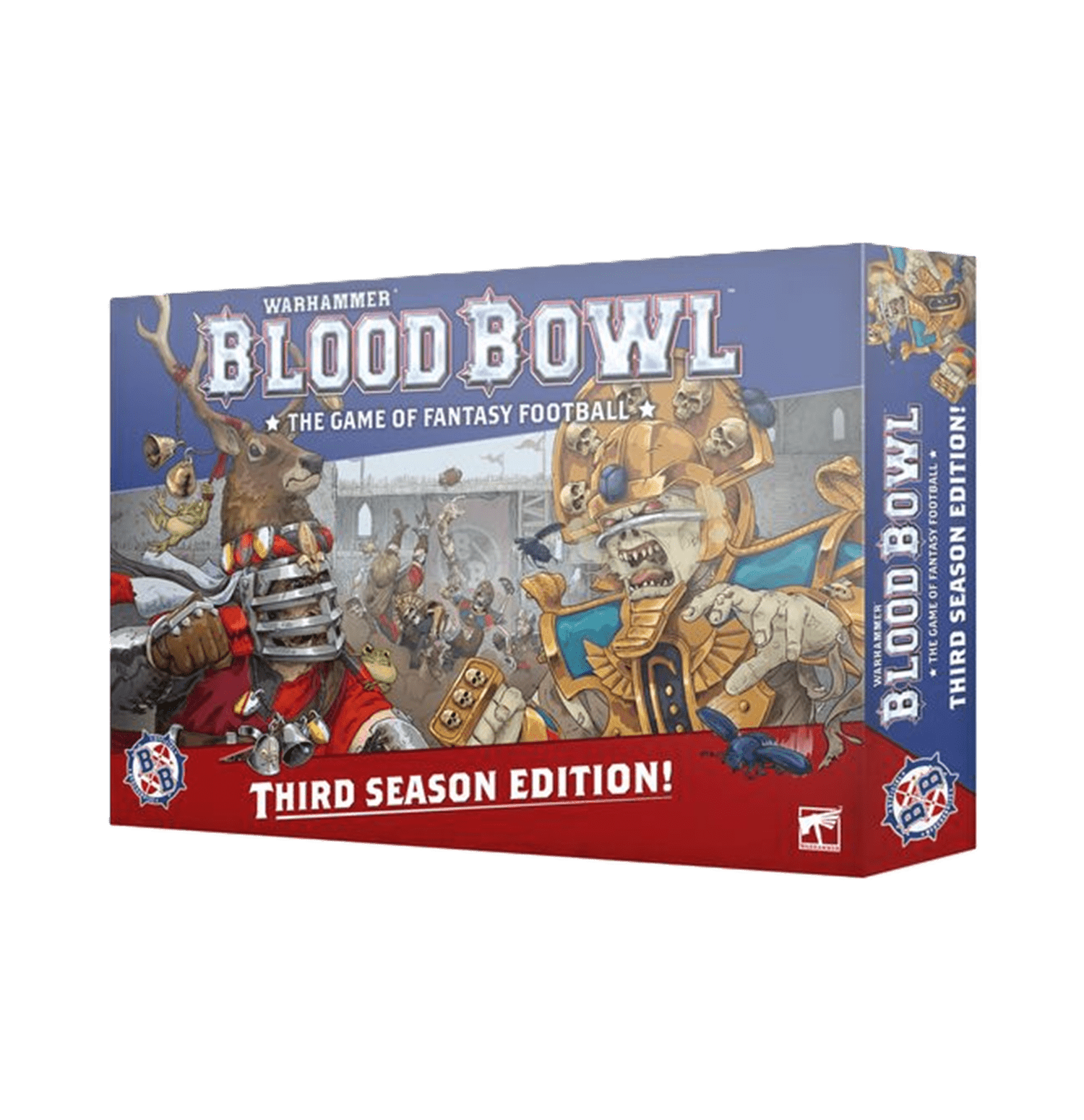 Esta caja trae todo lo que necesitas para jugar a Blood Bowl, con dos equipos, un reglamento, un tablero de juego de doble cara, fichas, dados y accesorios del juego. Los Brionne Barons son un equipo Bretonnian con caballeros acorazados en busca de gloria en Blood Bowl. Los Nehekhara Nightmares son un equipo de Tomb Kings de guerreros no muertos que han vuelto para mostrarle a los vivos cómo se juega. Tanto si pisas por primera vez el terreno de juego como si ya tienes las botas gastadas, esta caja es perfecta para ti.