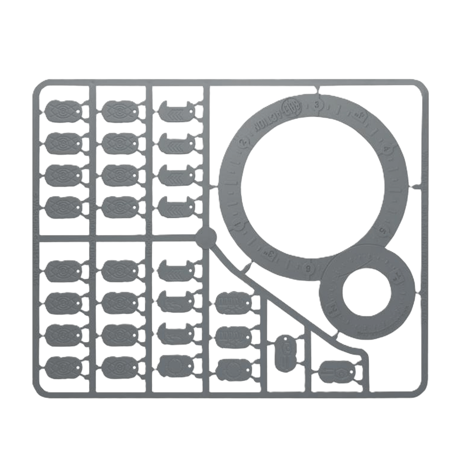 ¡Totalmente nuevo para Bolt Action! Todas las fichas necesarias para llevar un registro de las acciones de tus escuadras y otros recordatorios útiles, además de la nueva plantilla esencial para munición de Alto Explosivo (HE): ¡cuanto mayor sea la artillería, mayor será el área de efecto!