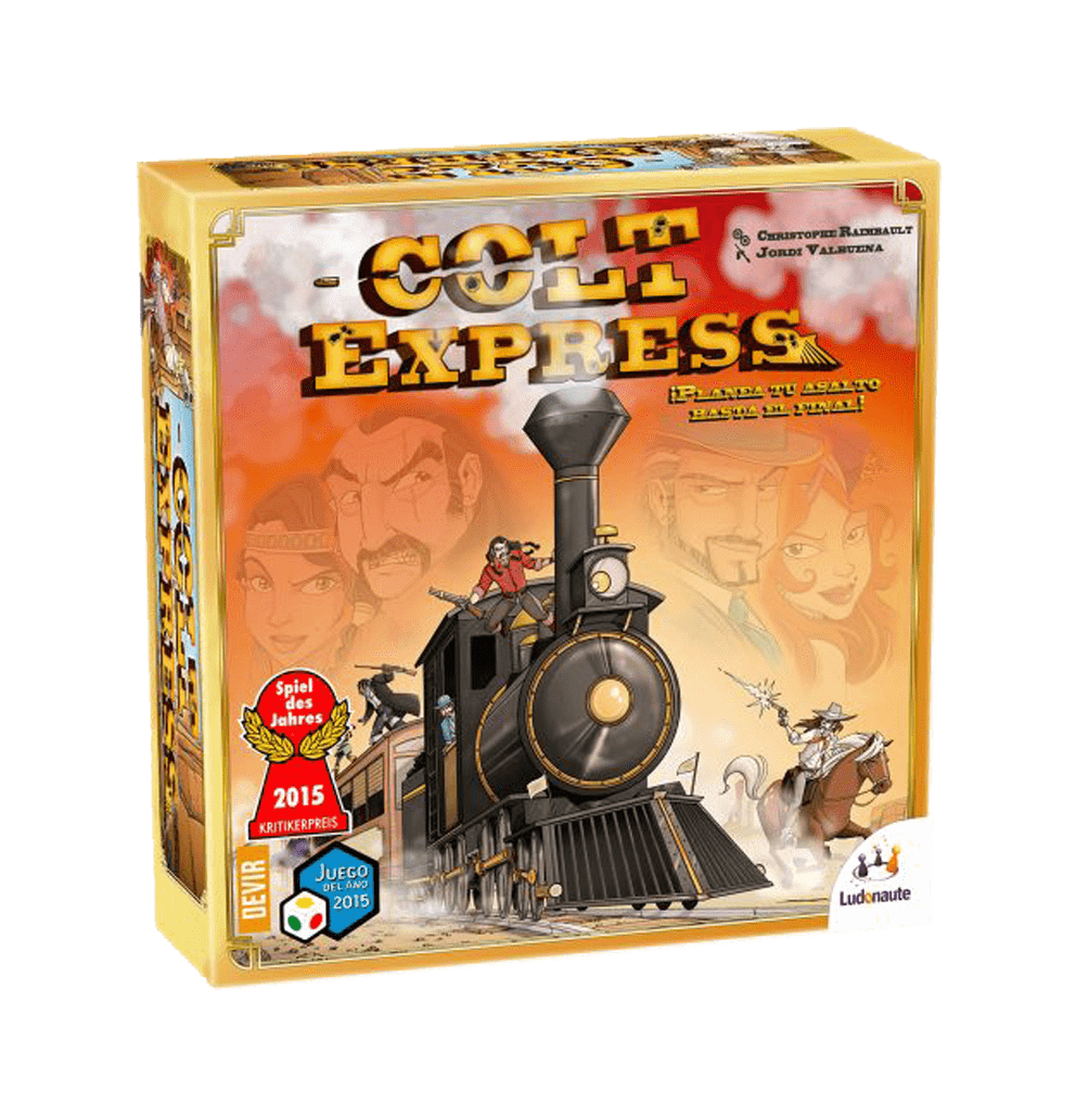 En el juego de mesa “Colt Express”, el Union Pacic Express ha dejado Folsom, Nuevo México, con 47 pasajeros a bordo. Después de unos minutos, se escucha el sonido de pasos rápidos, que vienen del techo y después, disparos. ¡Despiadados bandidos, fuertemente armados, están robando a los honestos ciudadanos sus bolsas y joyas! ¿Serán capaces de mantener la cabeza fría y esquivar las balas? ¿Podrán hacerse con las nóminas de la Niza Valley Coal Company, guardadas en maletines y custodiadas por el Marshal Samuel Ford? Sólo un bandido logrará su objetivo: convertirse en el forajido más rico de la banda.