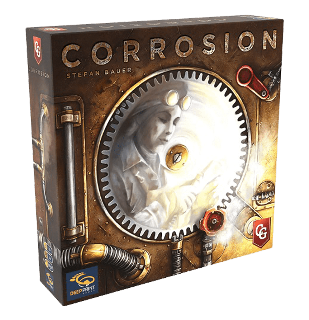 En “Corrosión”, cada uno de los jugadores administra una fábrica y despliega ingenieros para construir motores diversificados de puntuación y producción. Sin embargo, en el aire lleno de vapor, el mayor enemigo es el tiempo porque la mayoría de las máquinas y engranajes se oxidan rápidamente, por lo que es recomendable que también se produzcan engranajes cromados y se invierta en máquinas cromadas potentes y resistentes al óxido.