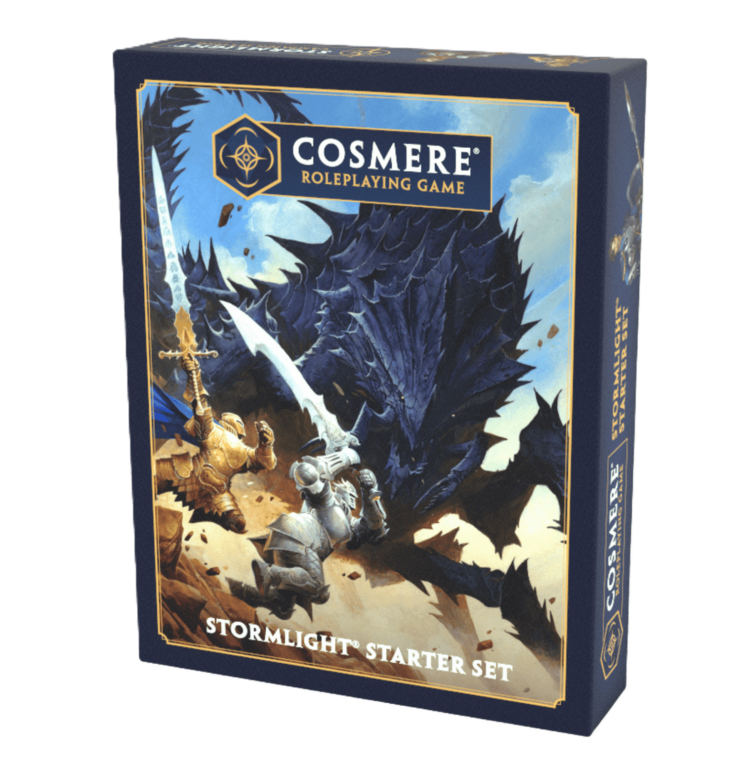 ¡Reúne a tu tripulación y aventúrate en las llanuras destrozadas! El “Pack de iniciación de Stormlight o  Starter Kit” contiene todo lo que necesitas para empezar a jugar al Juego de Rol del Cosmere. Todo en este juego está diseñado para introducir a nuevos maestros de juego al juego de rol Cosmere y nuevos jugadores al entorno de campaña Stormlight.