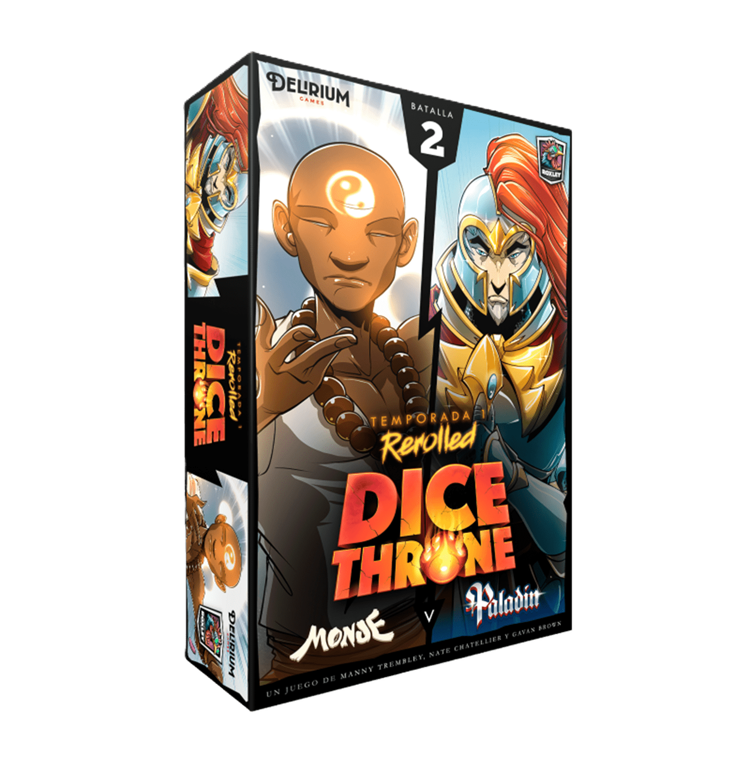 “Dice Throne: Temporada 1 – Monje v. Paladín” es una nueva edición remasterizada de la expansión del juego de mesa Dice Throne. En esta caja encontrarás todos los componentes de dos héroes legendarios (monje y paladín): sus dados, sus cartas, contadores y diales necesarios con componentes revisados, actualizados y mejorados.