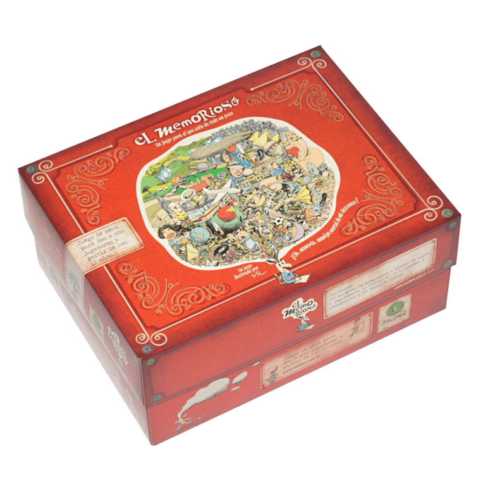 “El Memorioso” es un juego de mesa en donde la memoria y la agilidad mental son claves para ganar. Al sacar una tarjeta, corre el tiempo y se compite pare ver quién recuerda más (y los más atípicos) elementos de una determinada lista. Con una cuota de estrategia se podrán duplicar o dividir los puntos de los jugadores, según sus conocimientos en las más variadas temáticas existen.