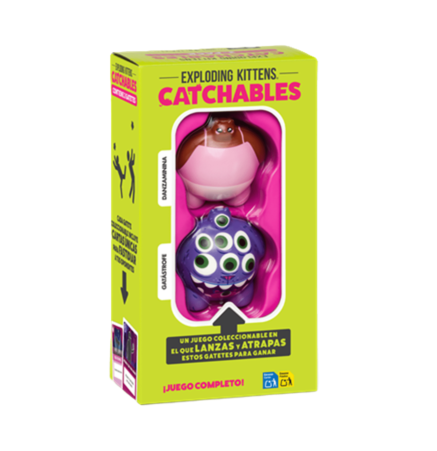 Tira y atrapa para ganar. Este juego perteneciente al mundo de “Exploding Kittens” es muy fácil, lo único que tienes que hacer es tirar tu Catchable al aire y volverlo a atrapar. Pero vas a tener un buen puñado de cartas frente a ti que convertirá esa sencilla tarea en algo muy (muy) difícil.
