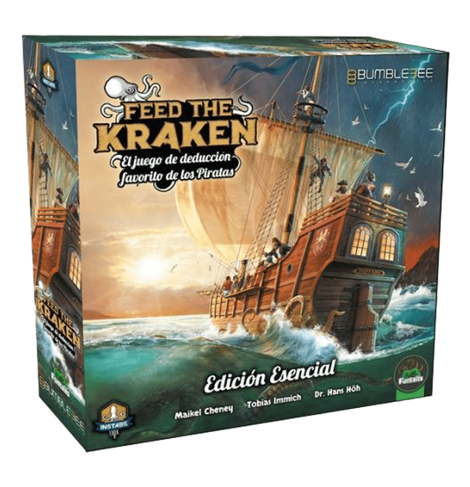 “Feed the Kraken” es un juego de mesa, de deducción de roles ocultos, con tres facciones asimétricas. Todos los jugadores están en el mismo barco, ¡pero quieren navegar en direcciones diferentes!