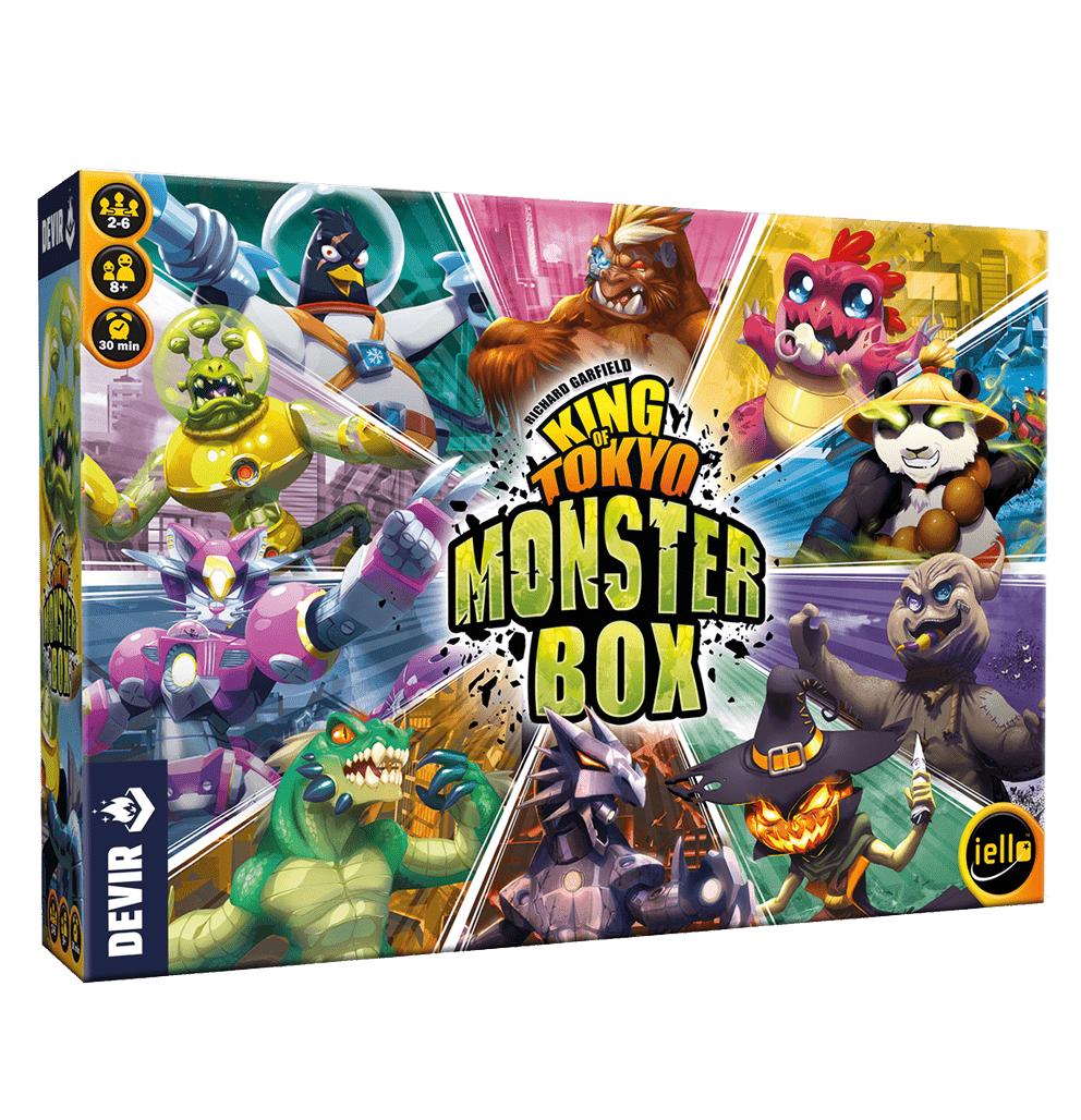 “King of Tokyo: Monster Box” nos reta a ponernos en la piel de monstruos mutantes, robots gigantes o fieros alienígenas en un combate salvaje por dominar la capital de Japón. Elige tu mejor estrategia, lanza los dados, derrota a todos tus enemigos, gana puntos de fama y conviértete en el único e indiscutible gran rey de Tokyo.