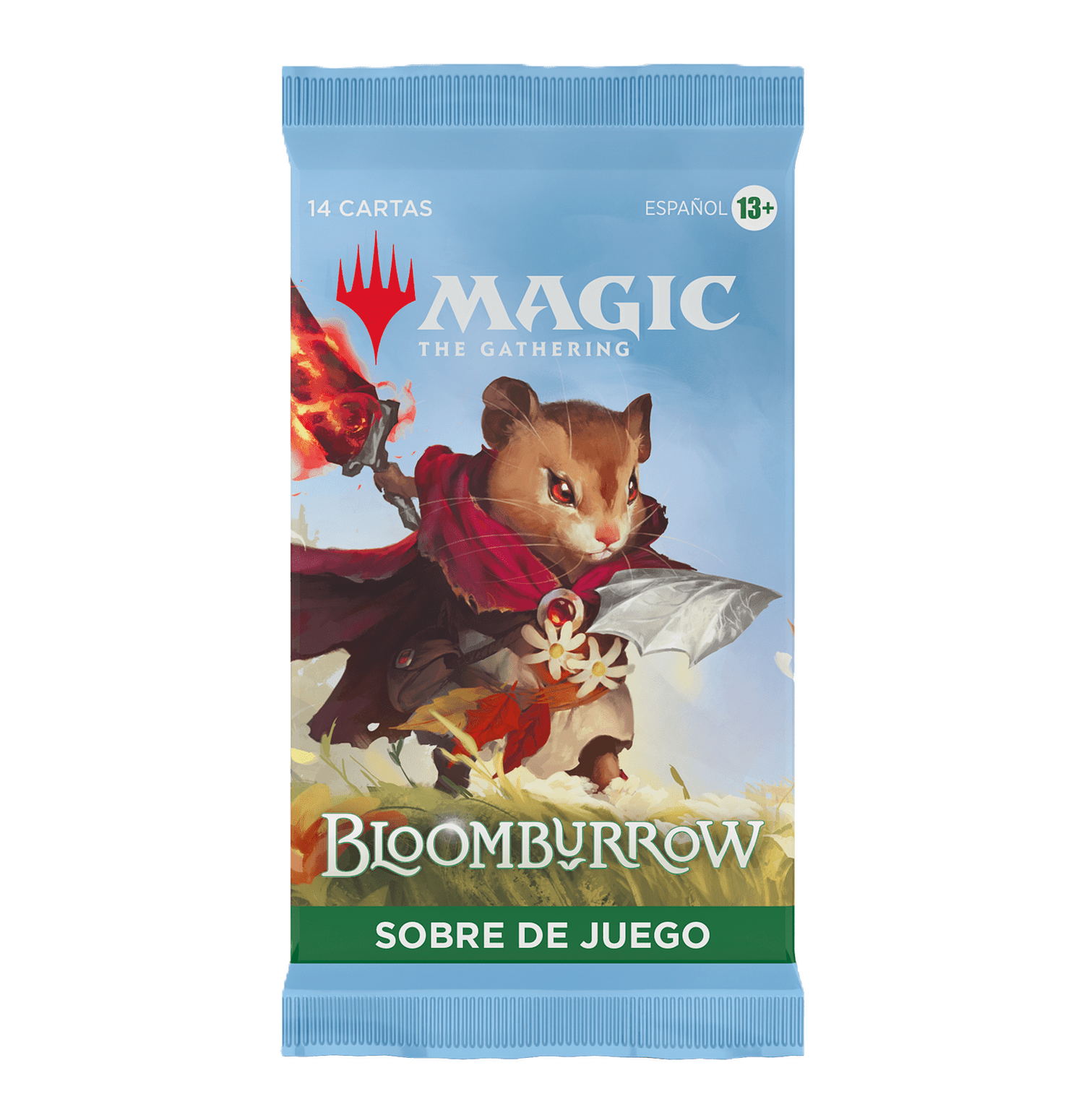 Los sobres de juego de Bloomburrow son perfectos tanto para Limitado como para abrir por diversión y cada uno incluye 14 cartas de Magic: The Gathering y 1 ficha, carta publicitaria o carta de arte (puede haber una carta de arte normal en el 30 % de los sobres y una carta de arte con la firma estampada en foil en el 5 % de ellos). Cada sobre contiene una combinación de entre 1 y 4 cartas raras o de una rareza superior, entre 3 y 5 poco comunes, entre 6 y 9 comunes y 1 carta de tierra. Una carta de cualquier rareza es foil tradicional. La carta de tierra también es foil tradicional en el 20 % de los sobres. Hay un planeswalker raro mítico foil sin borde en menos del 1 % de los sobres.