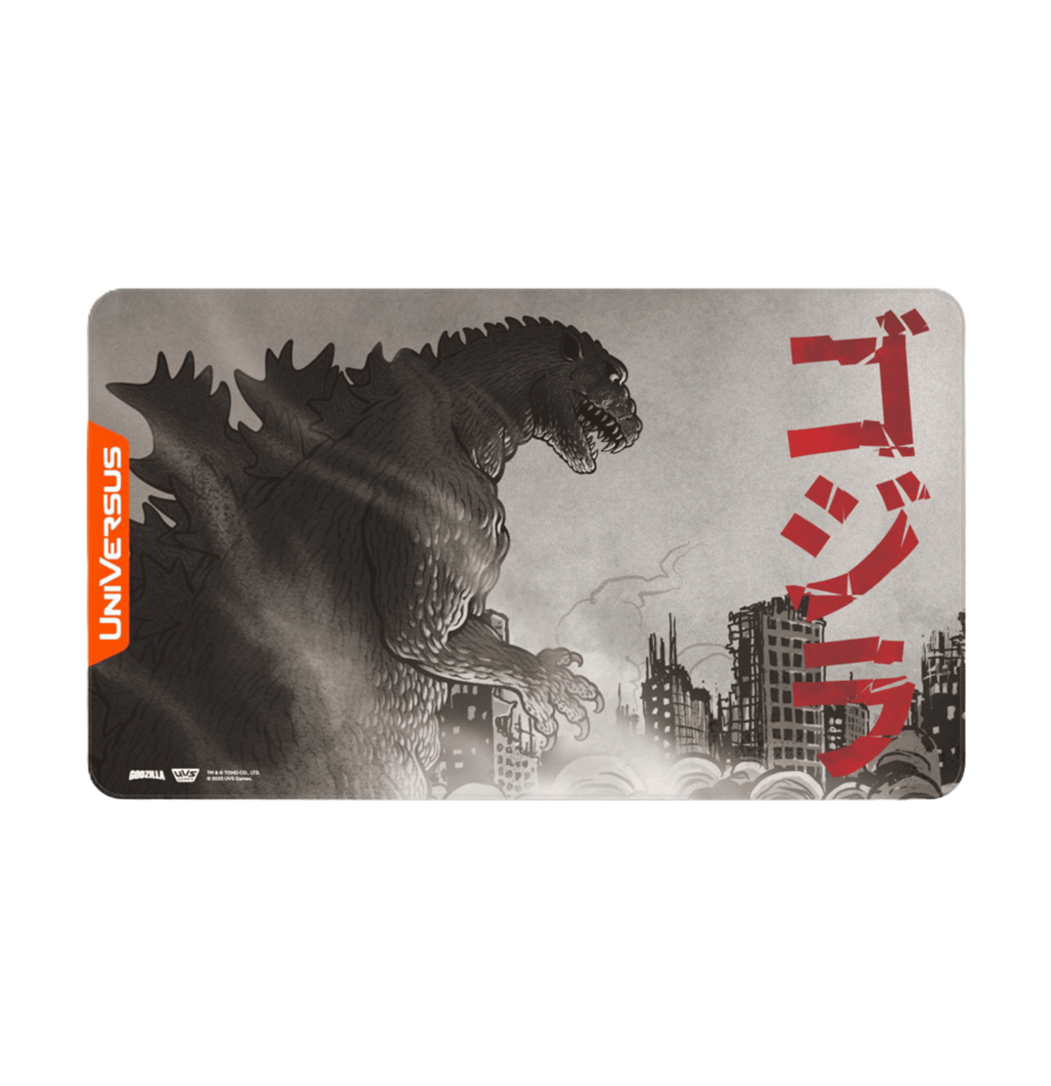 Tapete o Playmat de neopreno de alta calidad, de diseño de Godzilla, personaje del Universus. Se mantiene en su lugar: superficie lisa con respaldo de goma para evitar que la alfombrilla se deslice. Es el accesorio ideal para elevar tu experiencia de juego en Universus.