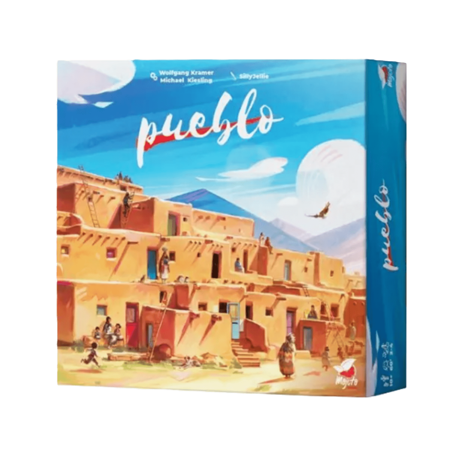 En el juego de mesa “Pueblo”, el escenario temático son los pueblos nativos americanos de las tribus del suroeste de Zuni y Hopi. La partida se desarrolla sobre un tablero de espacio limitado. Cada jugador recibe una cantidad de bloques de construcción de su propio color, y también algunos bloques de colores neutros (uno menos que los de color).