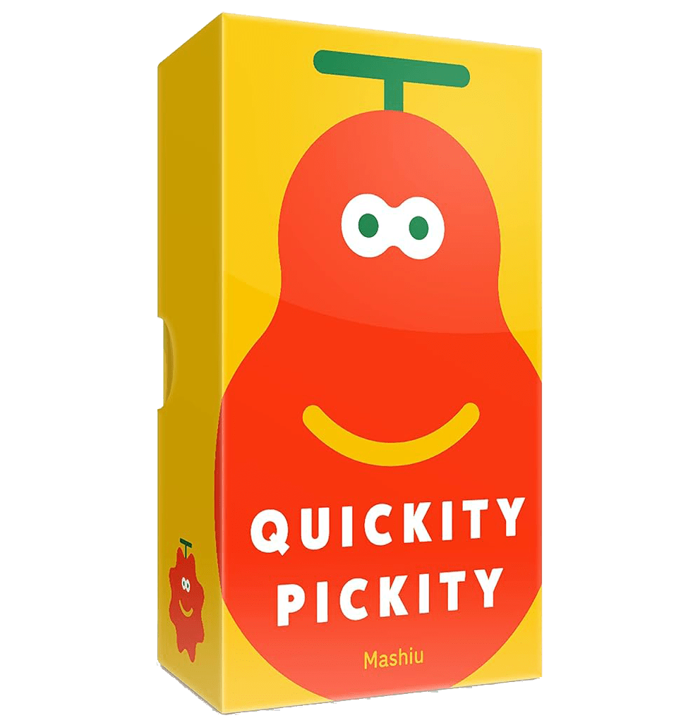 “Quickity Pickity” es un frenético juego, de voltear fichas, que requiere que los jugadores sean rápidos con las manos y con el cerebro. Todos empiezan a voltear las fichas al mismo tiempo, buscando crear un conjunto de frutas del mismo color o forma.