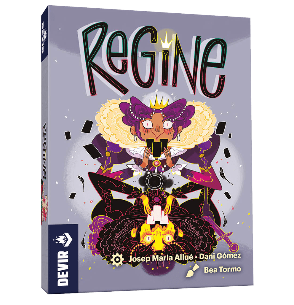 “Regine” es un juego de cartas con apuestas que nos traslada a las cortes europeas de finales del siglo XVI. El objetivo consiste en ser el primero en alcanzar treinta y un puntos de victoria. Pero vigilad vuestras espaldas… ¡porque los puñales vuelan!