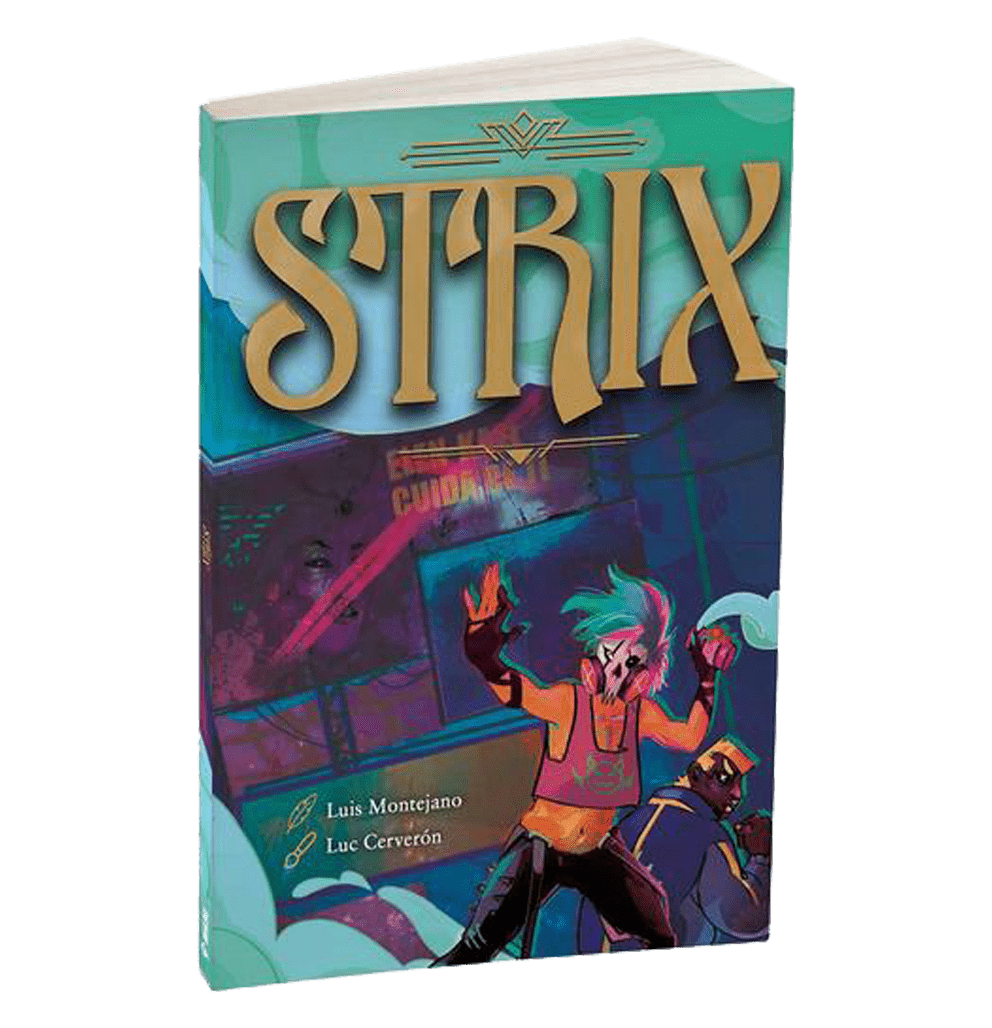 Bienvenido a “Strix”, una ciudad viva y llena de tecnología que sufre bajo el yugo de Elen-Kael, la ciudad más poderosa del mundo. Desde que tenéis memoria, sus gobernantes se han aprovechado de vuestras gentes y recursos. Pero no estáis dispuestos a seguir bajo su control. Sois jóvenes queer que lucháis por vuestra independencia y la de Strix a cualquier coste. Strix es un juego de rol narrativo sin DJ en el que buscáis liberar vuestra ciudad de las garras de Elen-Kael. Formad una banda callejera, asaltad Elen-Kael, robad tecnología, recuperar lo que es vuestro y conseguid vuestros objetivos en un entorno steampunk urbano que definiréis antes de empezar a jugar. ¡Coge tu monopatín propulsado, salta entre dimensiones y lucha por tu libertad!