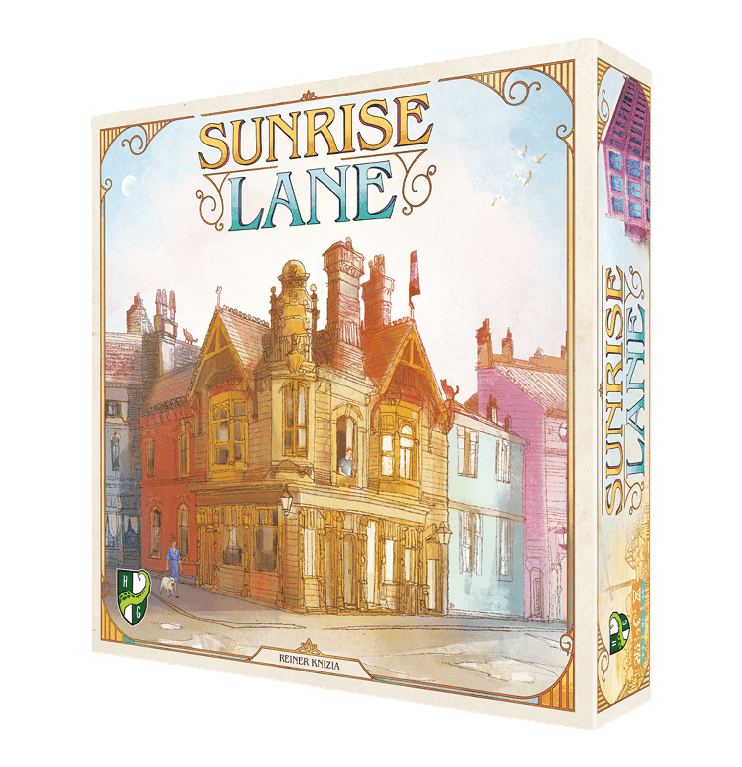 En “Sunrise Lane”, los jugadores logran esto haciendo coincidir las tarjetas de construcción de colores con las parcelas de tierra en el tablero para construir estructuras que valen más puntos.