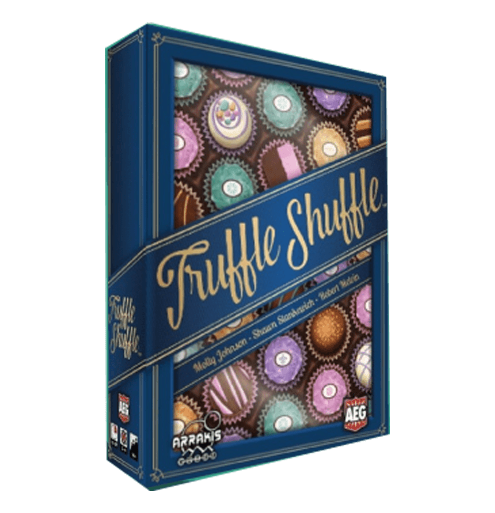 “Truffle Shuffle” es un juego de cartas donde los jugadores seleccionan, por turnos, trufas de chocolate de una caja común, representada por un tablero de cartas, mientras intentan crear su propia caja de trufas basada en lo que los compradores quieren.