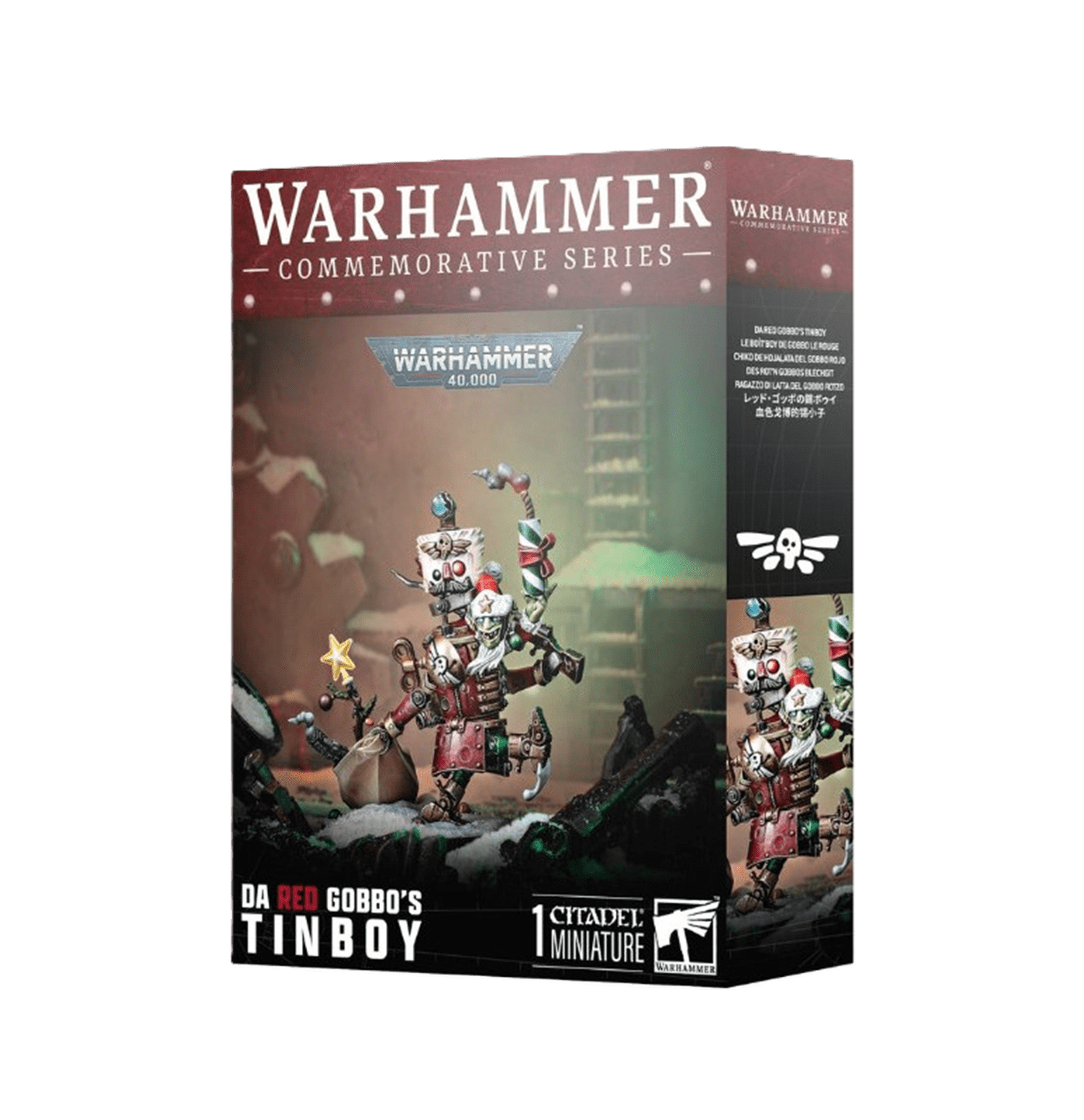 ¡La Navidad llega al 41.º milenio! Da Red Gobbo regresa cabalgando sobre su mecánico Tinboy, un andador que recuerda sospechosamente a un soldado Vostroyano. Armado con espíritu festivo y explosivos envueltos para regalo, este modelo rebosa carácter y humor orko.