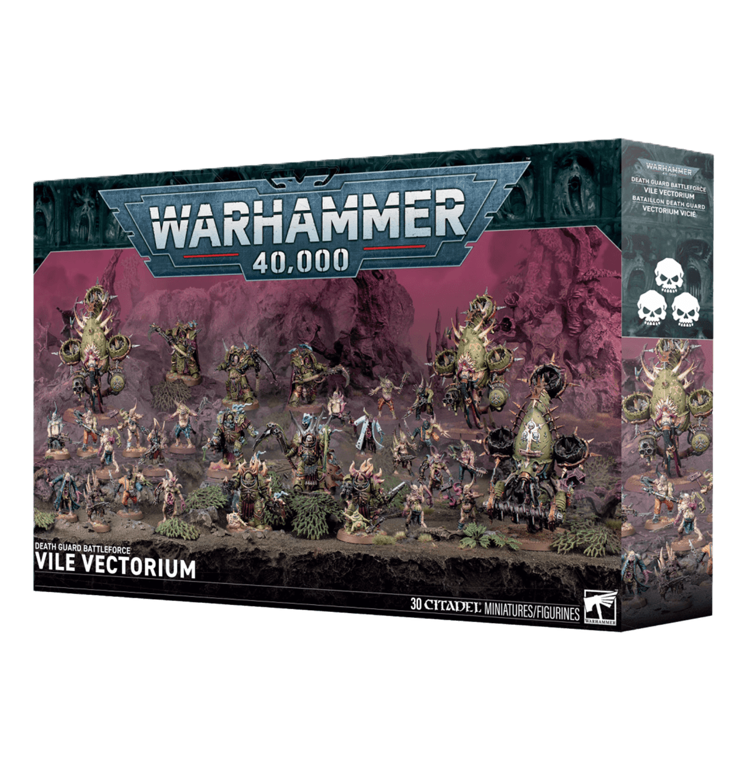Esta completísima caja es ideal para empezar o ampliar una colección de la Guardia de la Muerte para Warhammer 40,000 de forma más económica que comprando los kits por separado. La fuerza está liderada por el Señor del Contagio Lord Felthius y su escolta de Exterminadores Dominaplagas. El núcleo está formado por unos Plagabundos ideales para inundar el campo de batalla, tomar objetivos vitales y absorber el fuego enemigo. Tres Exterminadores Sudario de Muerte se preparan para hacer frente a los oponentes más duros, y tres Drones Fétidos apoyan a la fuerza con su velocidad.