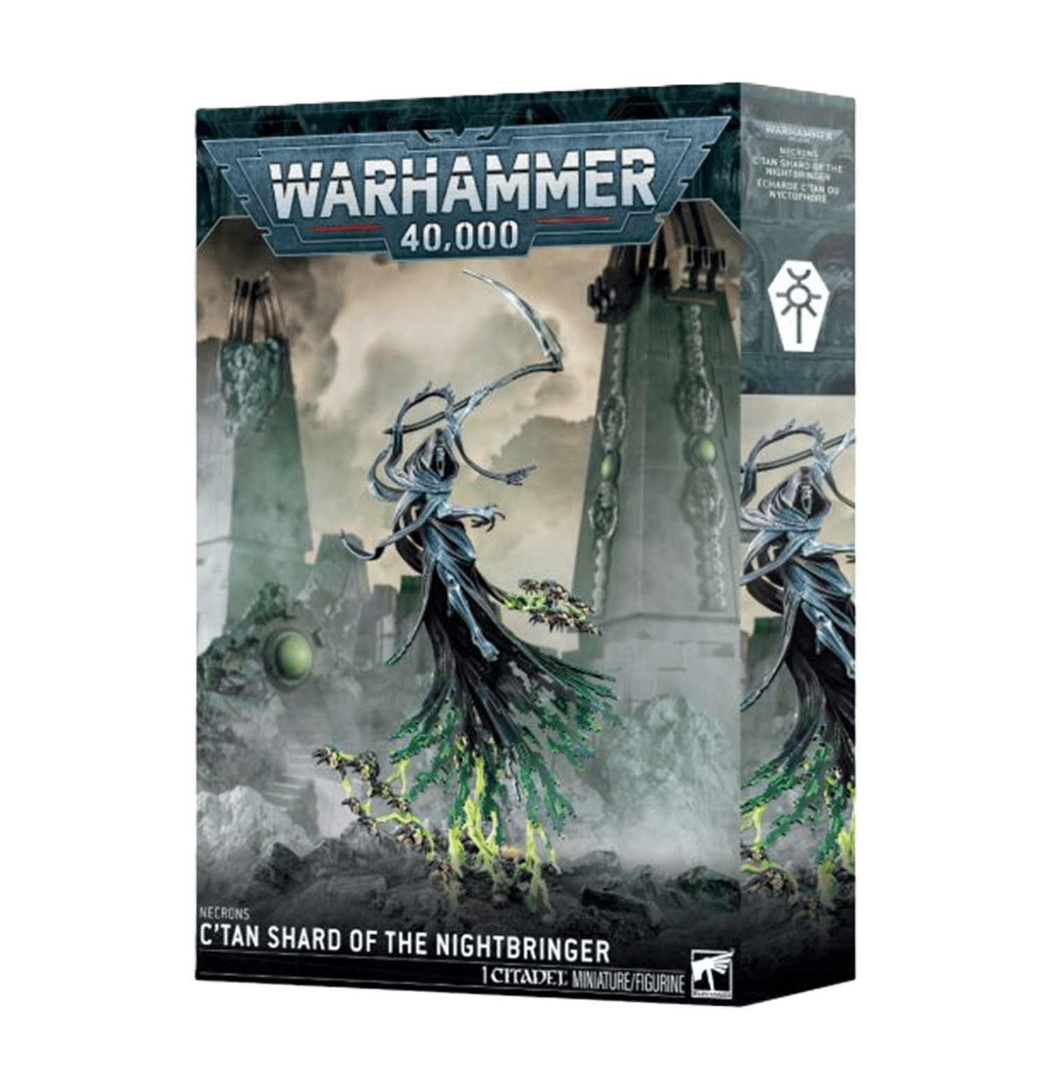El Portador de la Noche fue en otro tiempo la muerte encarnada: un dios sádico con el poder de deshacer estrellas y un ansia insaciable por consumir toda la vida de la galaxia. Los Necrones lo hicieron añicos como al resto de los C’tan, y desde entonces sus fragmentos enloquecidos han permanecido encadenados por aquellos a quienes antaño gobernó. Incluso un solo fragmento del Portador de la Noche puede aniquilar ejércitos enteros. De su necrodermis surgen hojas con forma de guadaña con las que siega a sus enemigos en amplios barridos de desintegración entrópica. Su propia mirada es la muerte: un vacío devorador capaz de absorber el ánima esencial de sus víctimas.