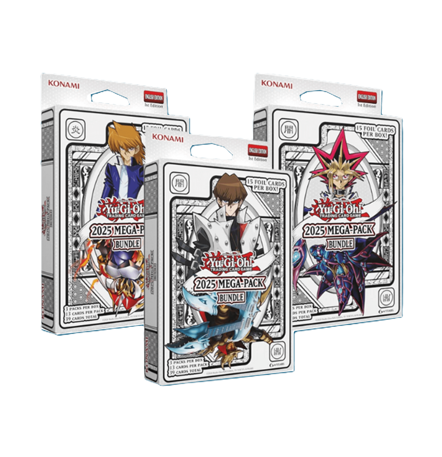 - 3 Mega Packs de Yu‑Gi‑Oh!, cada uno de los cuales contiene: 1 Rara Luz Estelar, 1 Rara Secreta Prismática, 3 Ultra Raras y 8 Cartas Comunes