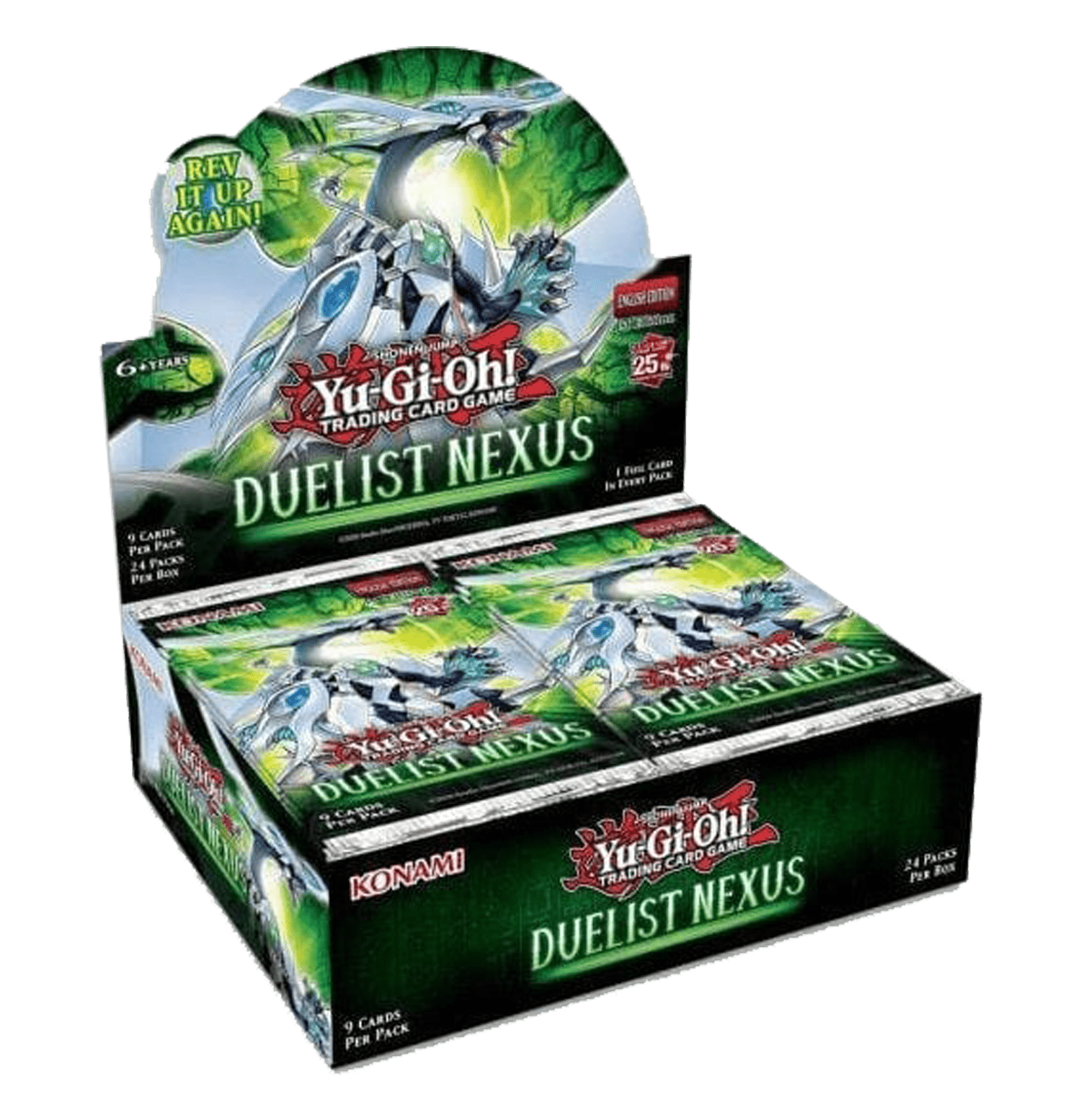 Duelist Nexus también incluye un nuevo tema de estreno mundial y presenta Quarter Century Secret Rares a los refuerzos básicos por primera vez. 25 cartas estarán disponibles como Quarter Century Secret Rares para representar los 25 años de Yu-Gi-Oh! ¡juego de cartas!