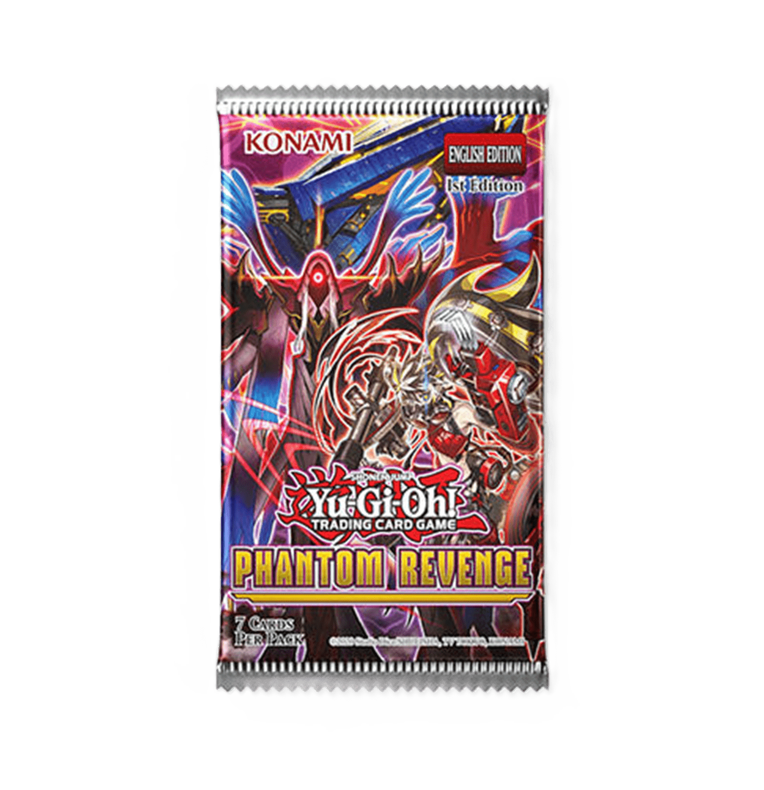 - 9 cartas del set “Phantom Revenge” de Yu-Gi-Oh!: 1 carta Foil y 6 cartas raras por sobre.